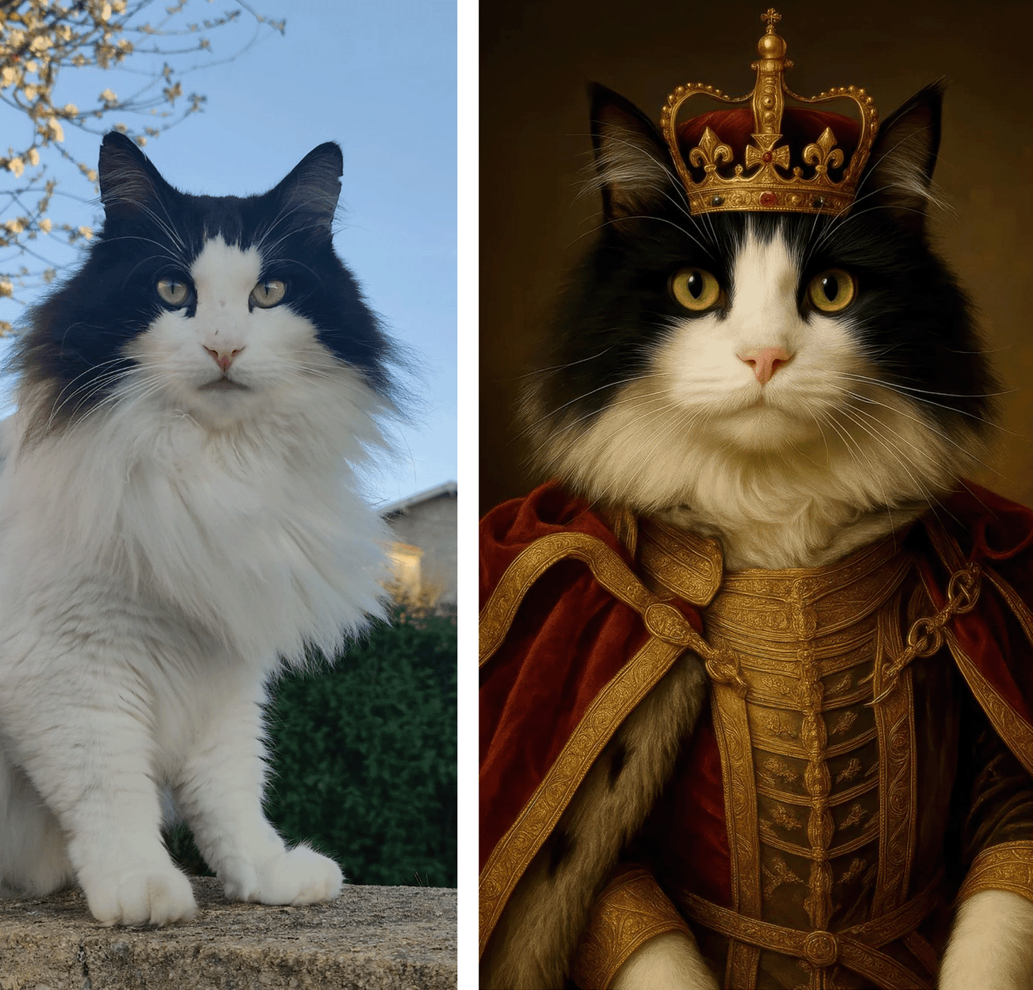 Nos artistes transforment votre compagnon en portrait royal unique et fidèle.